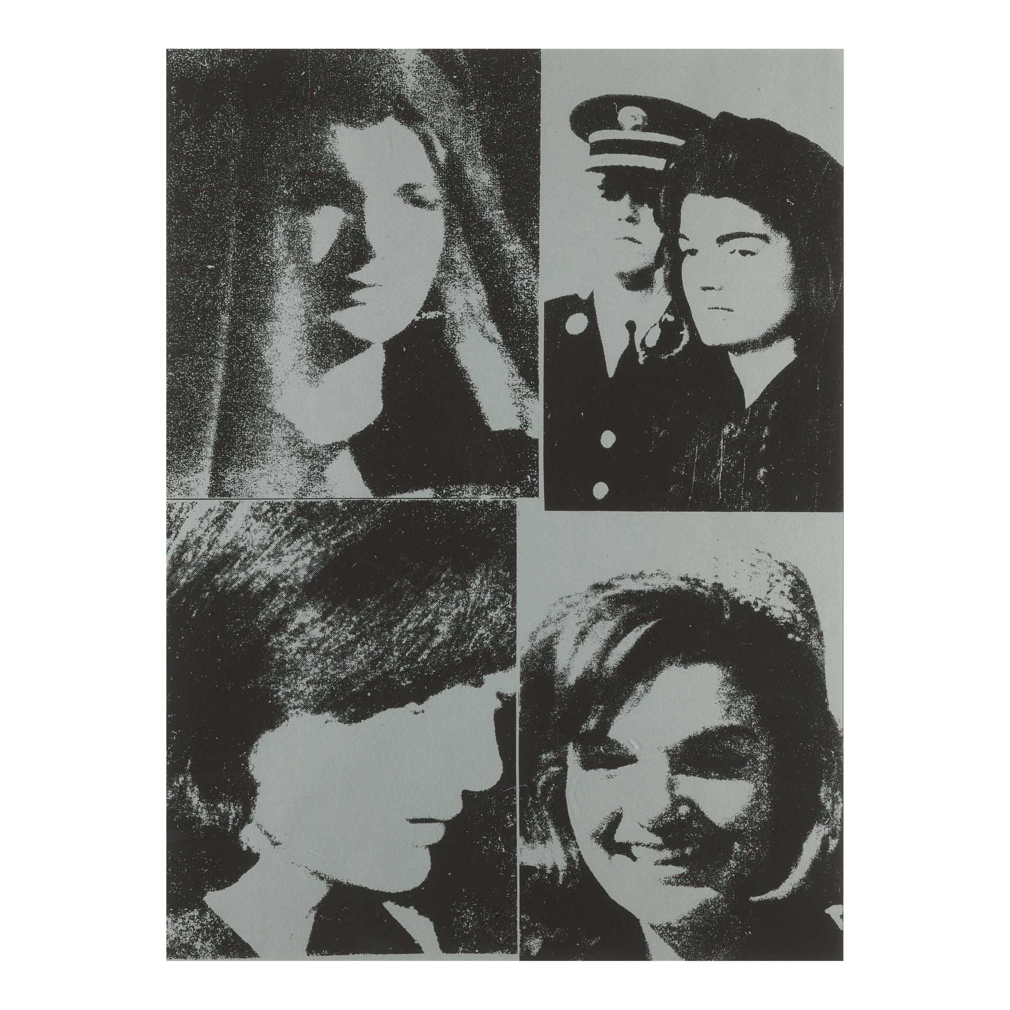 Cropping the source images that he found in Life magazine, Warhol transforms the assassination of JFK into a remarkable story of personal loss and grief. Focusing on the reaction of Jaqueline Kennedy, Warhol reportedly did not like how the media presented the death of the young Democratic President saying, “…it didn’t bother me much that he was dead, what bothered me was the way television and radio were programming everybody to feel so sad.”
